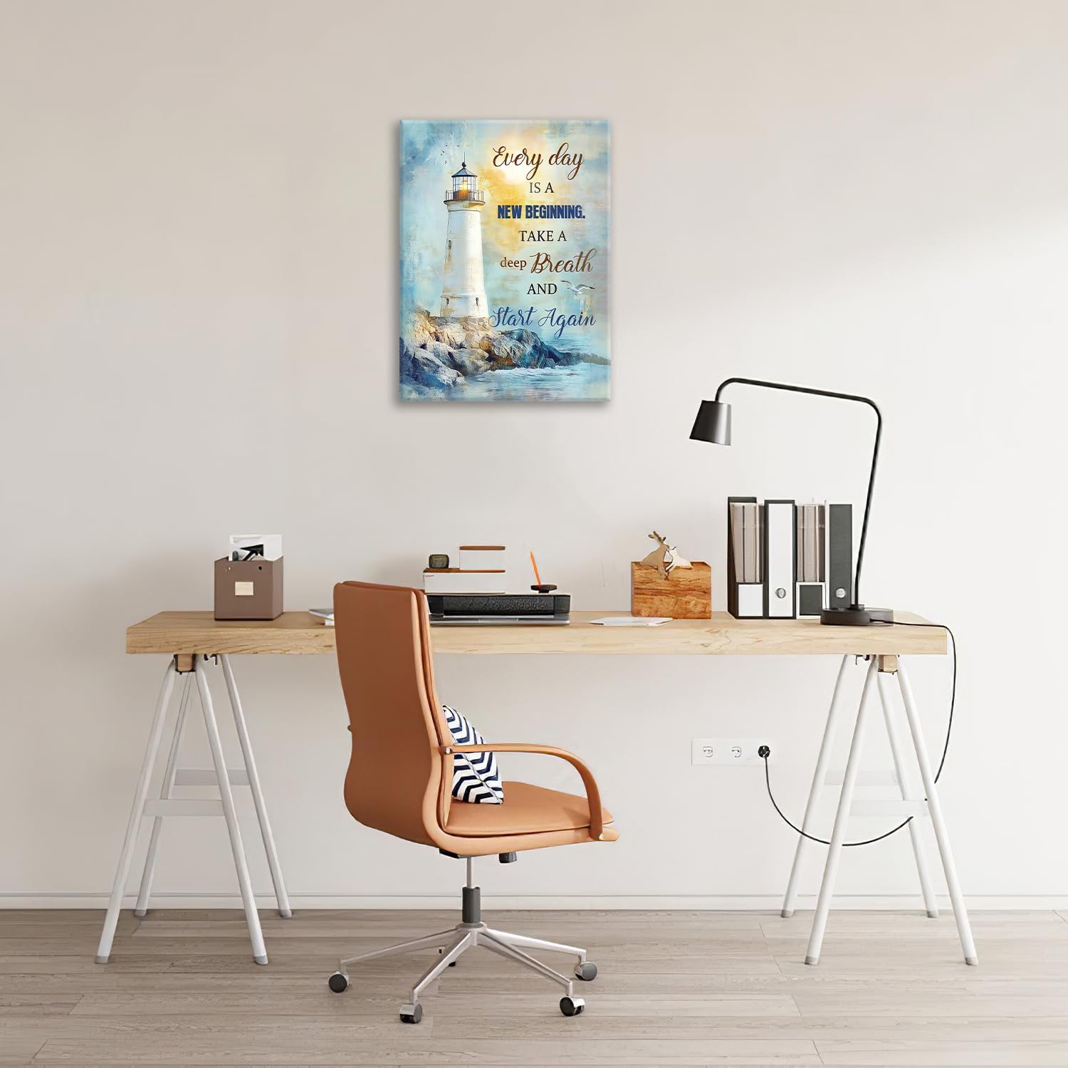 Ocean Lighthouse Pictures Wall Art, Coastal Nautical Bathroom Wall Decor Every Day is a New Beginning Motivational Quote Framed Painting Canvas Artwork for Bedroom Living Room Decorations 16"L x 12"W