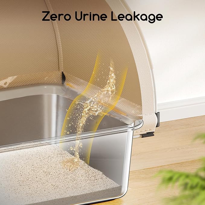- Perfect Combination: This set features a stainless steel litter box with a high-sided tent cover, a metal litter scoop, a deodorizing block, three buckles and four silicone anti-slip pads to keep the box in place and protect your floor. Designed to accommodate your cat from kitten to adult, offering a long-lasting and secure solution