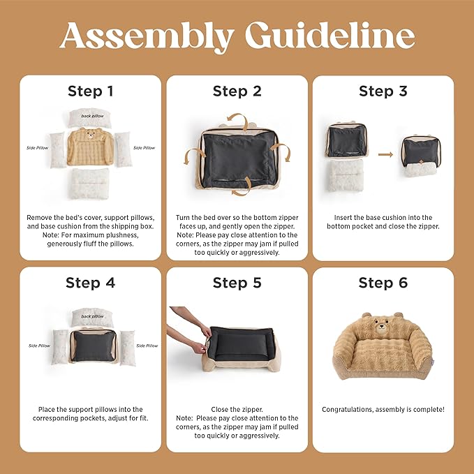 LE SURE Cute Cat Couch for Pets - Fluffy Original Bear Design for Small Dog Bed, Supportive Dog Couch with Removable Washable Cover, Puppy Bed for Small and Medium Dogs, 28inch, Almond