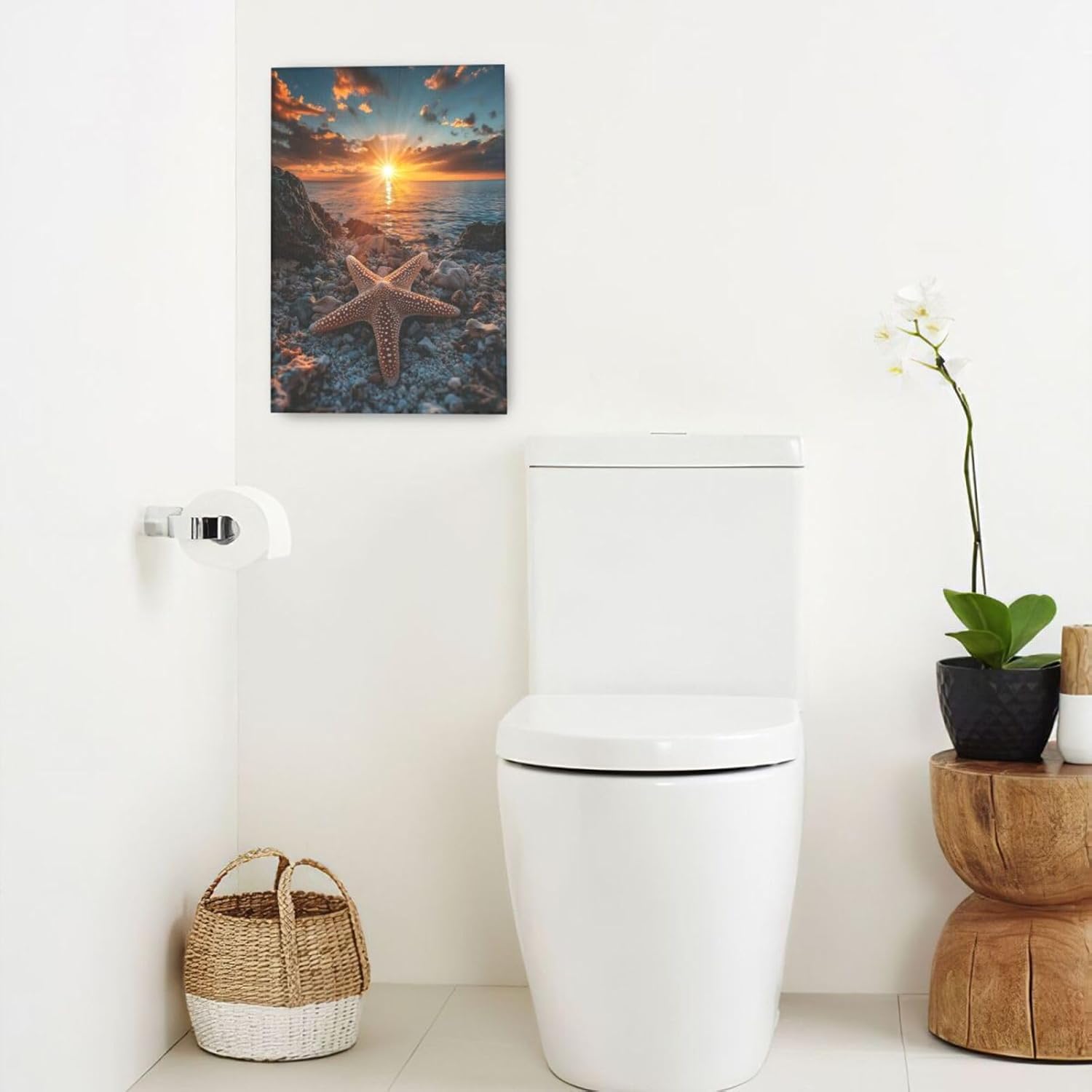 Beach Starfish Wall Decor Ocean Starfish Wall Art Sunset Scenery Coastal Theme Pictures Canvas Nature Seascape Painting Print Framed Artwork Decorations for Home Bathroom Living Room Bedroom Office 16"x24"