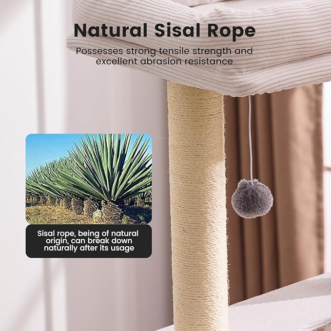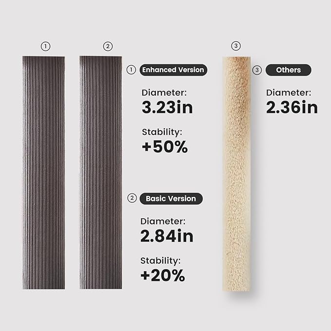 - [Ultra-Stable Heavy-Duty Design | Ideal for Multi-Cat Households] ✅ Reinforced Structure: Features 2.84-inch thickened posts wrapped in 450D wear-resistant plush fabric, supporting up to 30 lbs. Stays wobble-free even with 5 cats playing simultaneously. ✅ Extra-Large Base: 19" x 23" oversized base with anti-slip design prevents tipping.