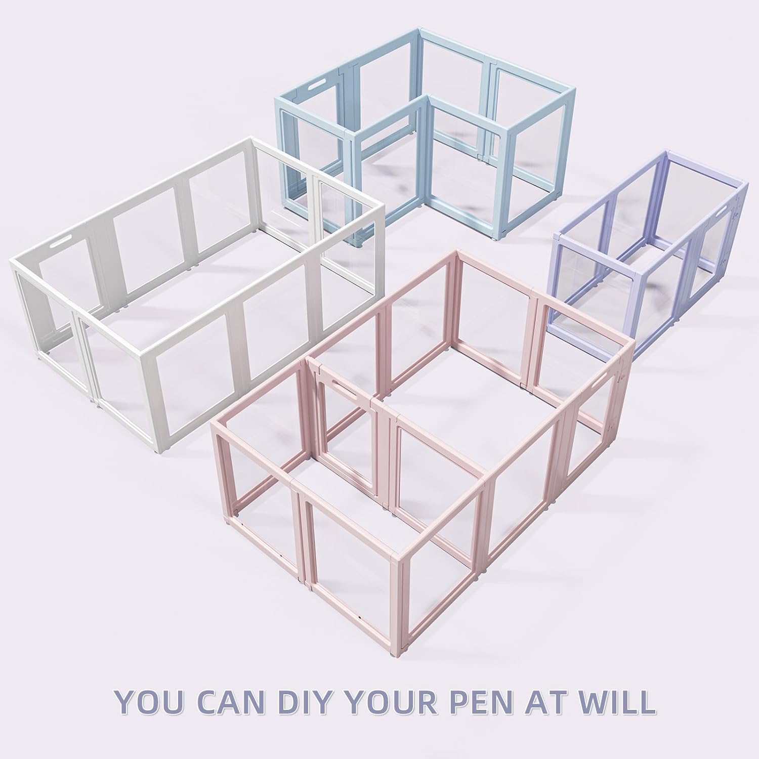 DIY Clear Acrylic Dog Playpen House,Quick Easy Assembly and Disassembly,Strong Floor Suction,Indoor and Outdoor Use,Easy Cleansing Puppy Fence (Skin Pink, 30.3" H, 8PCS)