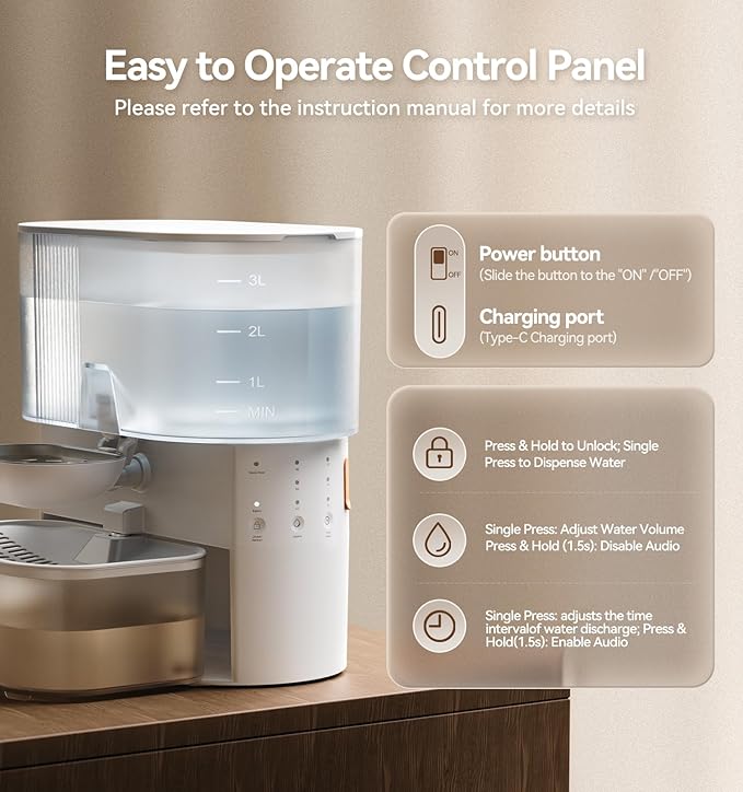 - Quiet Operation – Near-silent 30dB motor ensures peace day and night. *Note: A brief 30–35dB water-refill sound occurs during pouring water.* All detachable parts and non-stick materials enable 3-minute deep cleaning—perfect for sound-sensitive households