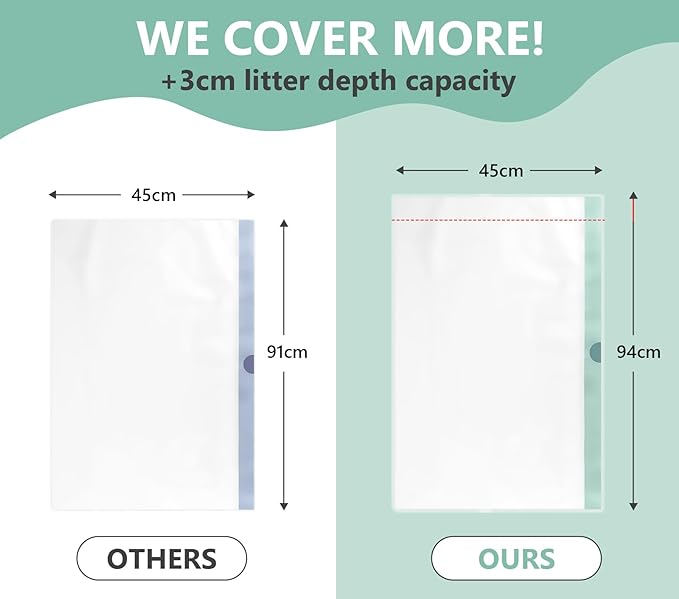 - Heavy-Duty 2 Mil Thick Scratch-Resistant Liners: Lab-tested 2 mil thickness withstands daily clawing and digging, holding up to 20+ lbs of wet, clumped litter without tears or leaks. Outperforms thinner store brands, even for multi-cat homes (secure edges with tape for extra durability during vigorous scratching).