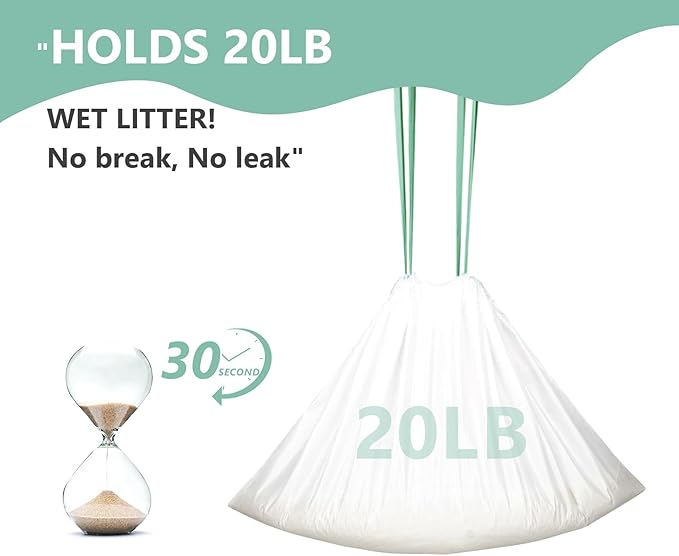 - Mess-Free Drawstring Cleanup: Double-stitched drawstrings seal waste in seconds—just pull, lift, and toss. Minimizes dust, spills, and odors, saving time on scrubbing and keeping hands clean. Perfect for weekly changes or daily scooping.