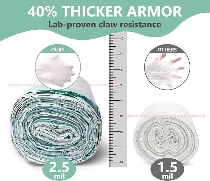- 2mil Claw-Resistant Armor: "Lab-tested 2mil thickness withstands daily clawing. Holds 20lb wet litter without tears – zero leaks even with 10+ lbs of clumped waste."
