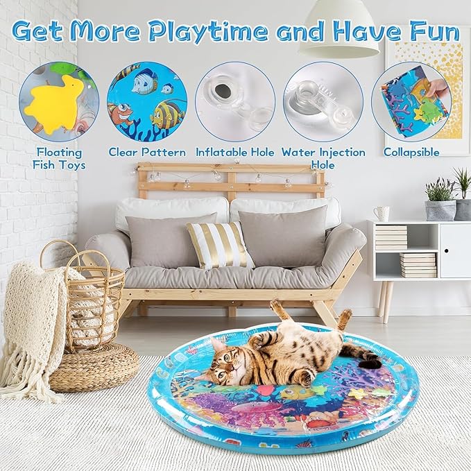 - 【Premium Durability for Long-Term Companionship】 Engineered with puncture-resistant layers , this mat outperforms standard models, Includes replaceable fish toys for extended use, offering unmatched value for quality-focused pet households.