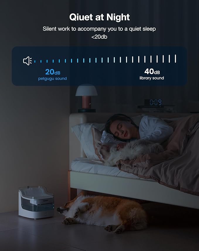 - Pet-Safe Materials, Built to Last: Made from food-grade ABS and a pet-safe PCTG transparent tank, this dog and cat water dispenser lets you easily monitor water levels at a glance. The non-slip silicone base keeps the unit stable, while the durable nylon-braided power cord resists chewing—perfect for playful pets. A smart and safe choice for your pet water fountain setup