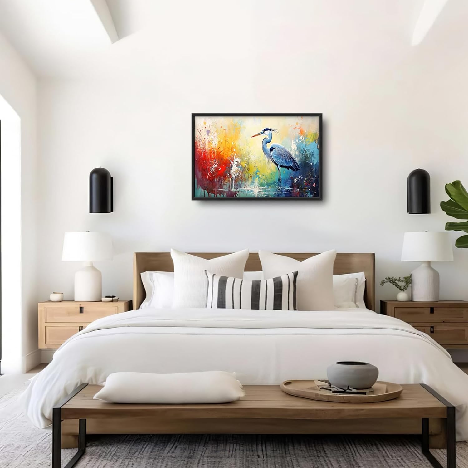 Extra Large Framed Abstract Heron Wall Art,Oversized Colorful Graffiti Heron Wall Decor Pictures for Living Room,Canvas Print Painting Modern Artwork Bedroom Office Bathroom Home Decor 36L x 24W