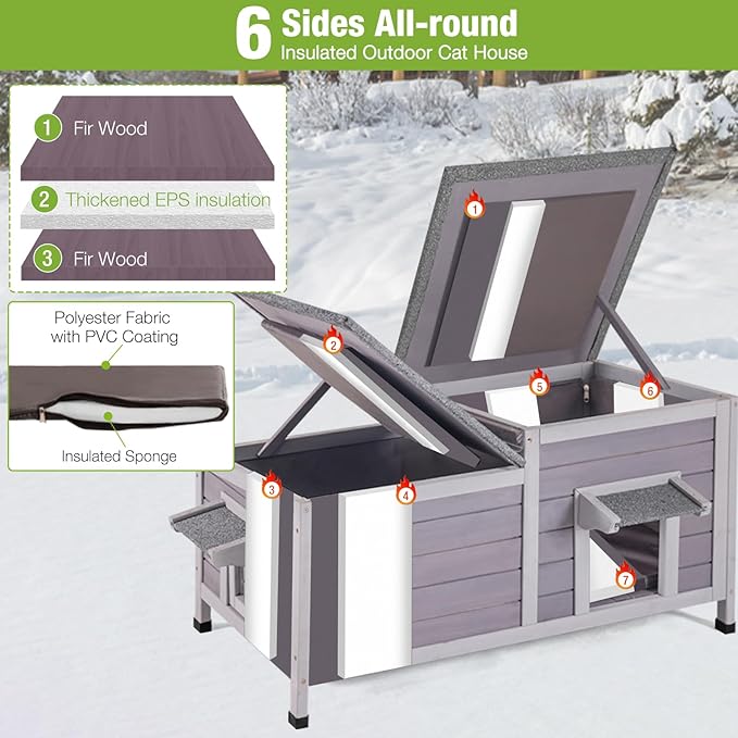 - Advanced Insulated Interior: Equipped with an upgraded insulated liner made of high-density sponge and PVC-coated fabric, this cat shelter offers a warm, cozy space for your feline friends. The removable liner is machine-washable, simplifying maintenance and ensuring long-term hygiene.