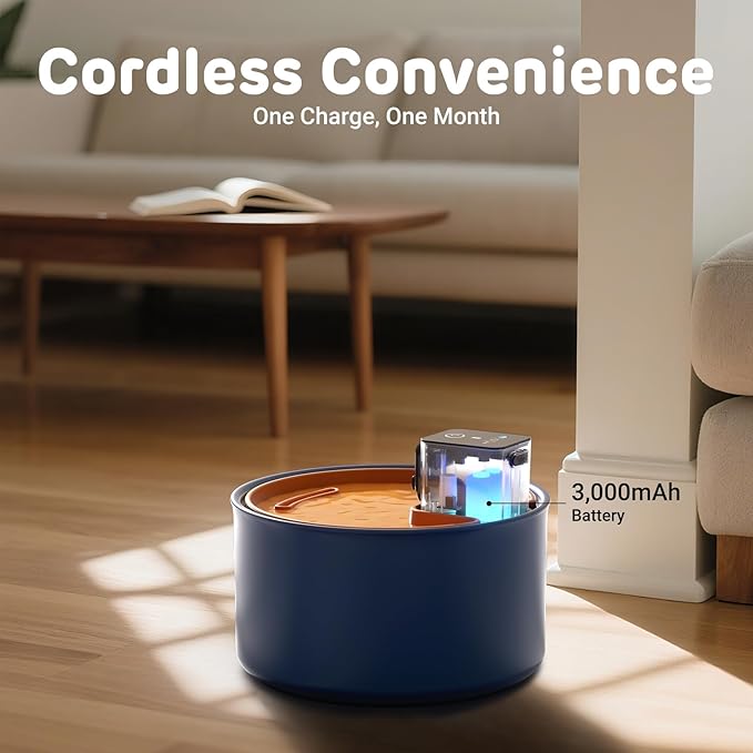 iPettie Ceramic Cat Water Fountain, 3.5L Cordless Pet Water Dispenser with 3 Water Modes, Ultra-Quiet Pump, Rechargeable 3000mAh Battery, BPA-Free Ceramic & ABS, Auto Low Water & Battery Alerts