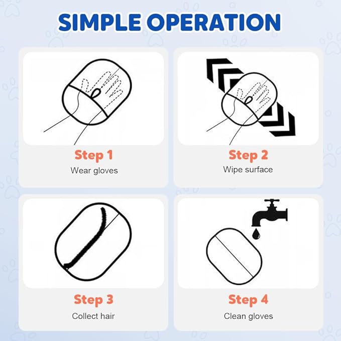 - You Will Get: 2 x Pet hair remover gloves. Its double-sided grooming design covers large areas quickly, making clean up of cat and dog hair fast and simple for home or cars