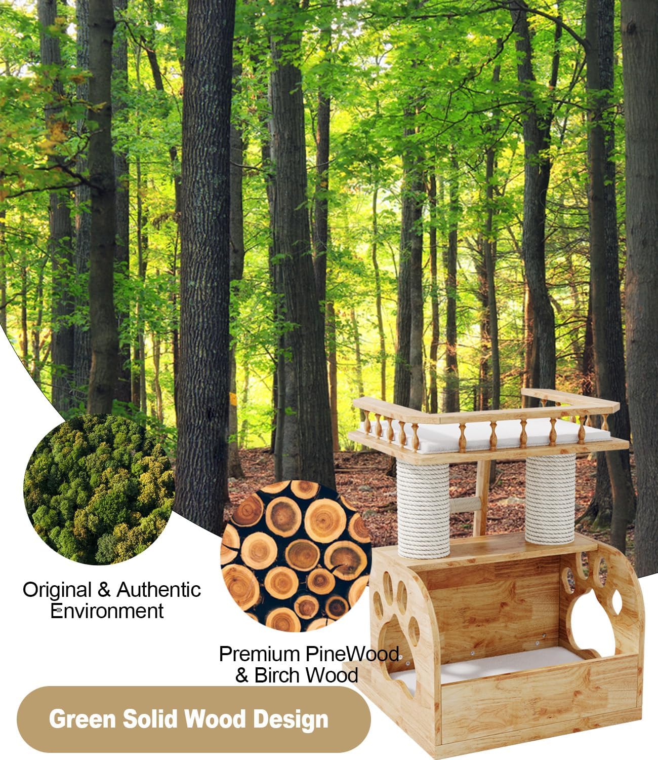 - "Z"-SHAPED DYNAMIC PATH DESIGN: Accurately simulate the outdoor movement patterns of cats, luxury cat tree house springboard layout is staggered in a "Z" shape, with a spacing of ≤60cm, natural cat tree tower bed to minimize the energy consumption of continuous jumping