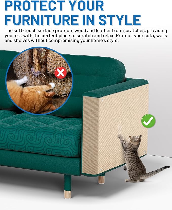 - Multi-Purpose Use: This cat scratcher pad is a versatile pet accessory. It can not only replace carpets but also protect sofa arms, corners, beds, doors, and more, offering a multi-functional solution for cat owners. It helps you create a scratch-free living space while providing your cat with a stress-relieving area, expanding the cat-friendly environment in your home