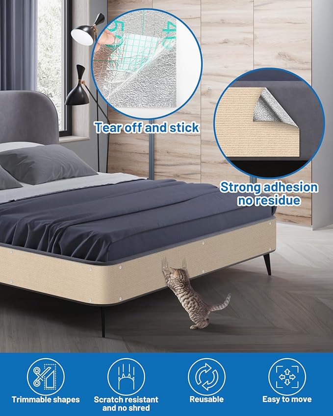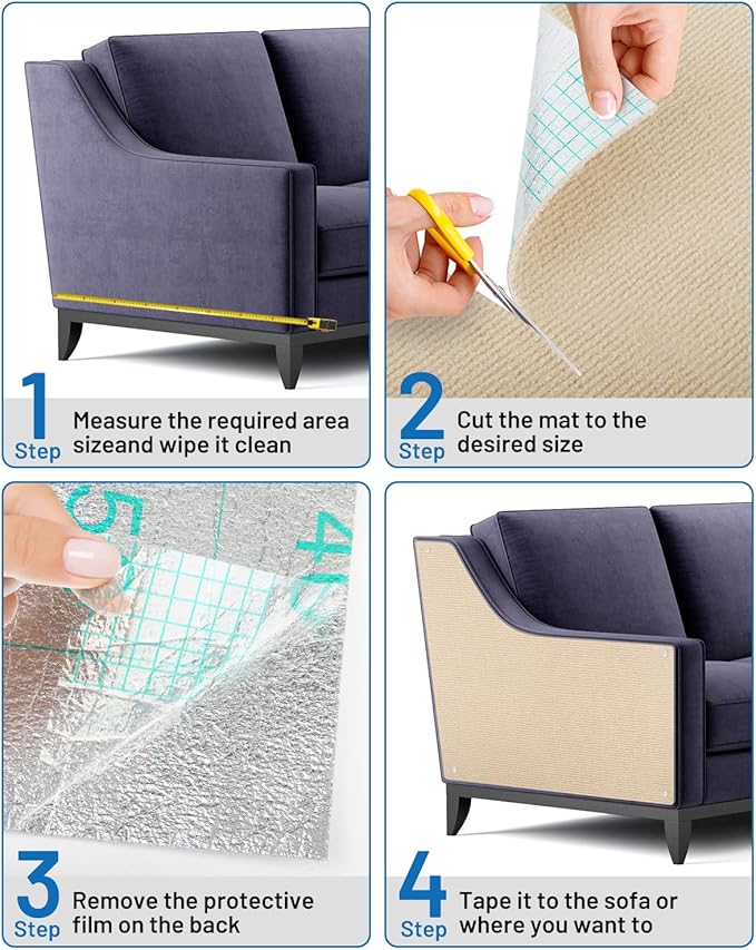 - Trimmable Cat Scratching Pad: You can freely cut it into any shape according to the actual size. It allows you to DIY various cat climbing frames, cat tree replacement columns, cat towers, sofas, walls, or other furniture. This is a versatile cat scratching furniture protector suitable for any space