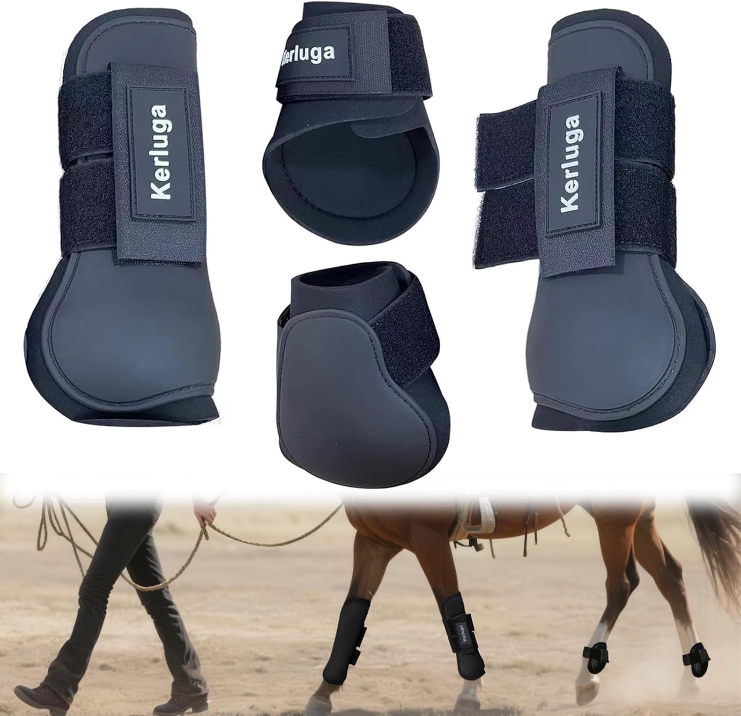 - COMPREHENSIVE LEG PROTECTION & SECURE FIT: Our sports medicine horse boots provide full protection to horse's legs during intense activities, such as speed racing or endurance training, preventing injuries from impacts with other legs or jumping objects. Simply slide the Equine Knee Support Boots onto your horse's legs, ensuring a snug fit around the hoof, then adjust the hook & loop to appropriate length, close and stick them together