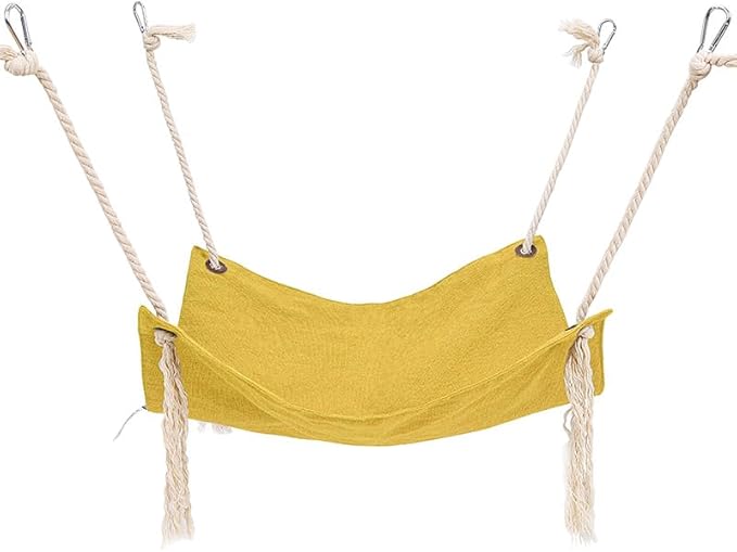 Breathable Linen Cat Hammock in Clean Solid Colors, Minimalist Design for Cages Machine Washable Available in 6 Colors, Yellow (Yellow)