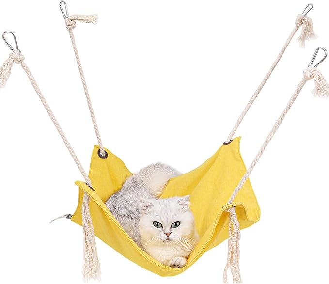 - 🔧 Effortless Setup Anywhere:** Sturdy cotton ropes with secure metal hooks on all four corners. Hang it in seconds inside crates, cages, on cat trees, playpens, or any sturdy frame.
