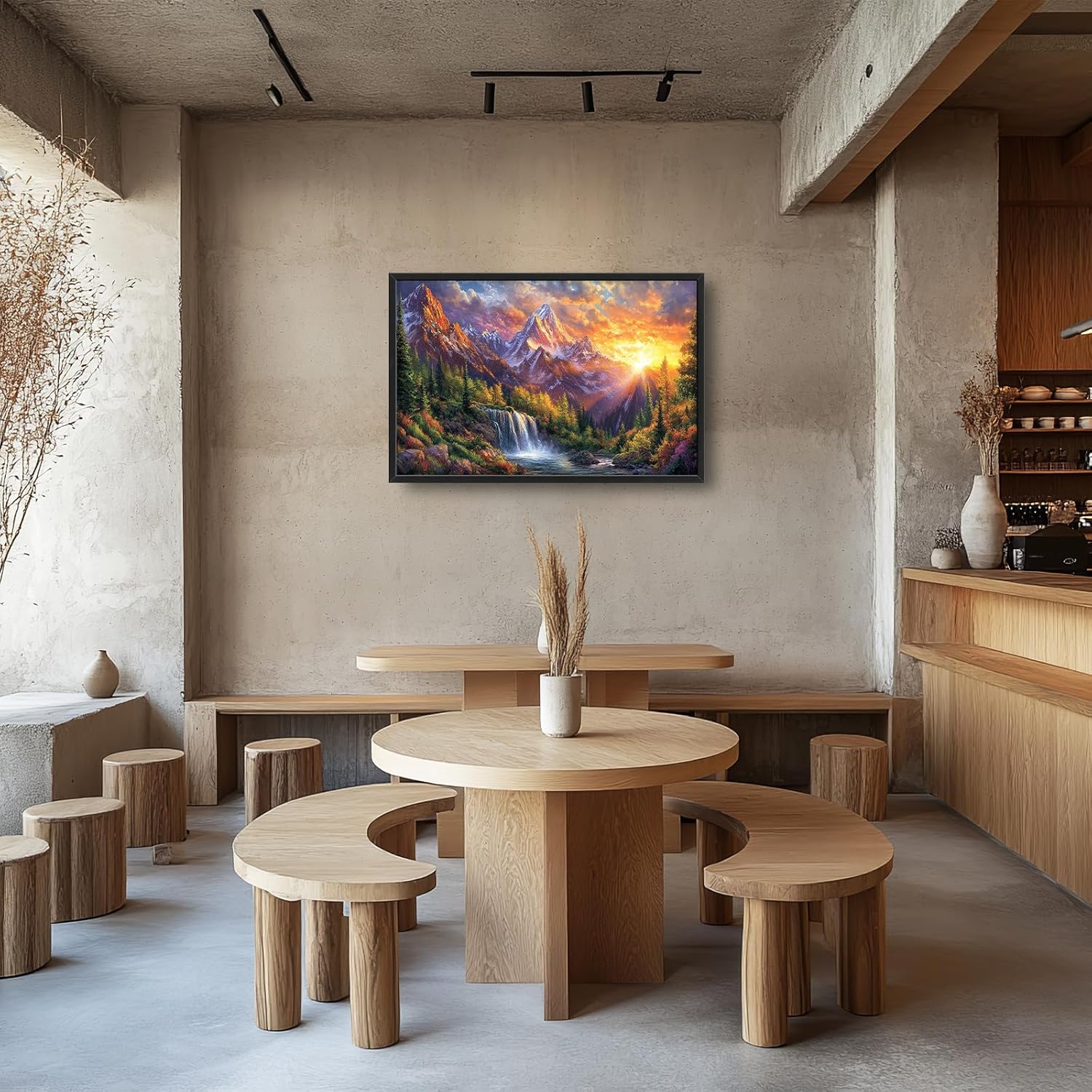 Large Mountain Tree Wall Art for Living Room, Framed Oversized Sunset Waterfall Wall Decor Nature Landscape Canvas Painting Modern Artwork for Living Room Bathroom Bedroom Office Dining Room 36"x24"
