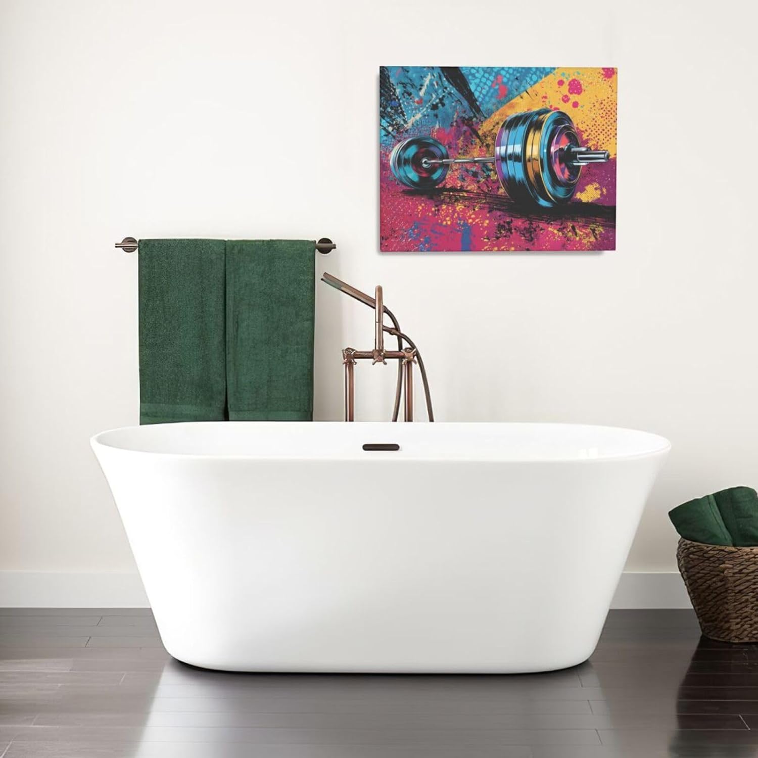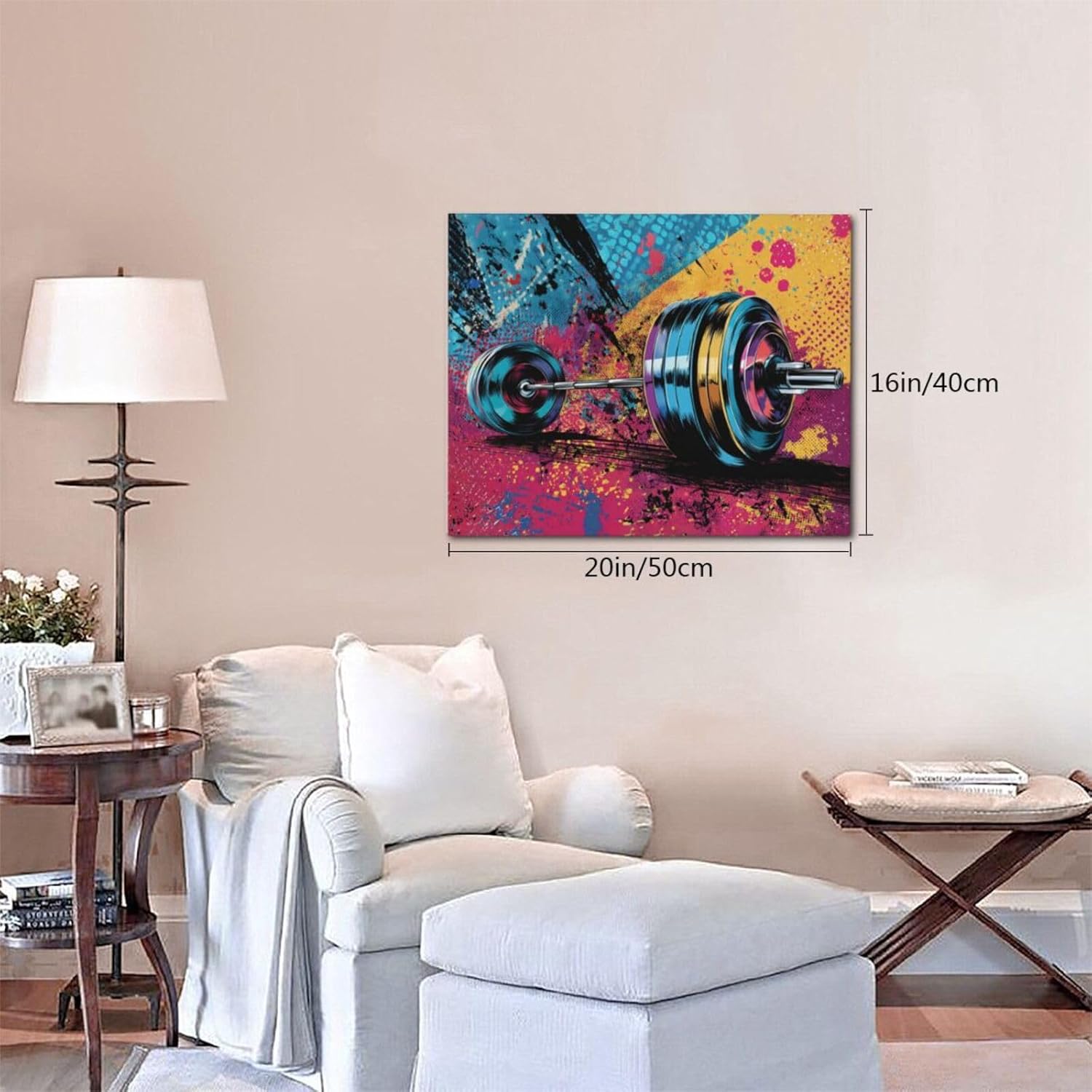Gym Wall Art Weightlifting Fitness Canvas Wall Decor Barbell Sports Training Pictures Painting Banksy Street Graffiti Print Artwork Framed Decorations Gifts for Sports Lovers Gym Living Room Bedroom 16"x20"