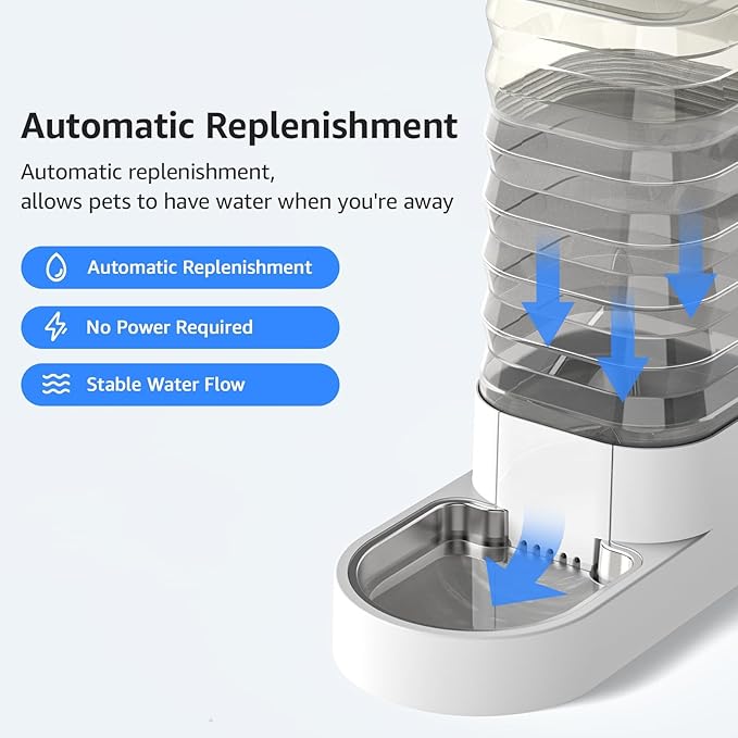 - 【Fresh - Automatic Flowing Water】With a self-gravity feeding design, the automatic dog waterer delivers a continuous flow of fresh water, eliminating the risk of your pet running out of water when you’re unable to refill their bowl.