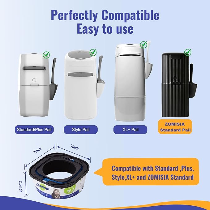 - Perfect Compatibility: Specially designed for Litter Genie systems, including Standard, Plus, Style and XL+ models. Also compatible with our Zomisia standard bins. Each 30ft refill lasts longer than any other – 4 Genie refill cartridges provide up to 72 weeks (Almost 17 months) for one cat