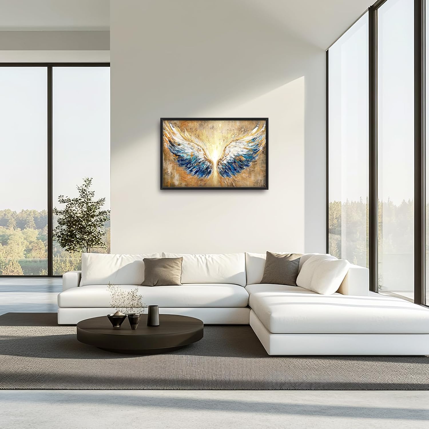 Extra Large Angel Wings Framed Wall Art for Living Room,Oversized Golden Wings Pictures Wall Decor,Holy Gold Blue Canvas Print Painting Modern Artwork Bedroom Office Bathroom 36L" x 24W"