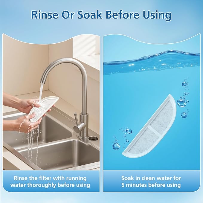 - 【𝐄𝐟𝐟𝐢𝐜𝐢𝐞𝐧𝐭 𝐅𝐢𝐥𝐭𝐫𝐚𝐭𝐢𝐨𝐧】 - Our pet water fountain filter features triple-layer filtration,effectively filtering out impurities like dust, debris, and chlorine, ensuring consistently clean, odorless, and better-tasting water