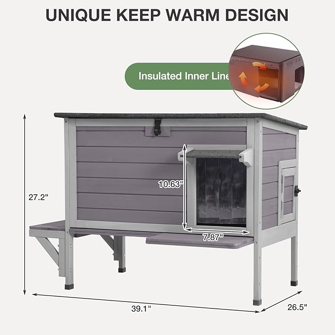 - Multi-functional Design: The cat house is suitable for both outdoor and indoor use. Its multi-functional design makes it an ideal addition to any space. The elevated design and platform provide extra resting and playing areas, giving your cat more options for activity.