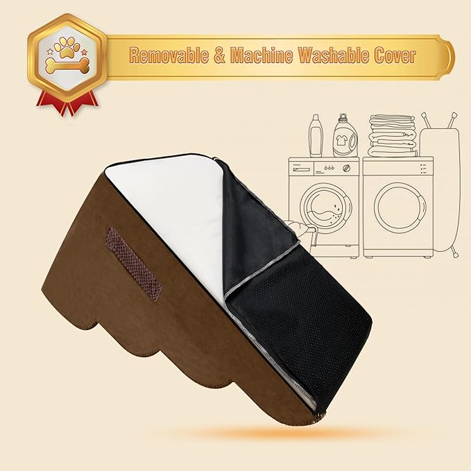 - Easy to Clean and Maintain - The washable cover of our pet stairs is removable and easy to clean, and the zipper design allows for convenient hand washing or machine washing. Please note that the foam core should not be machine washed or dried.
