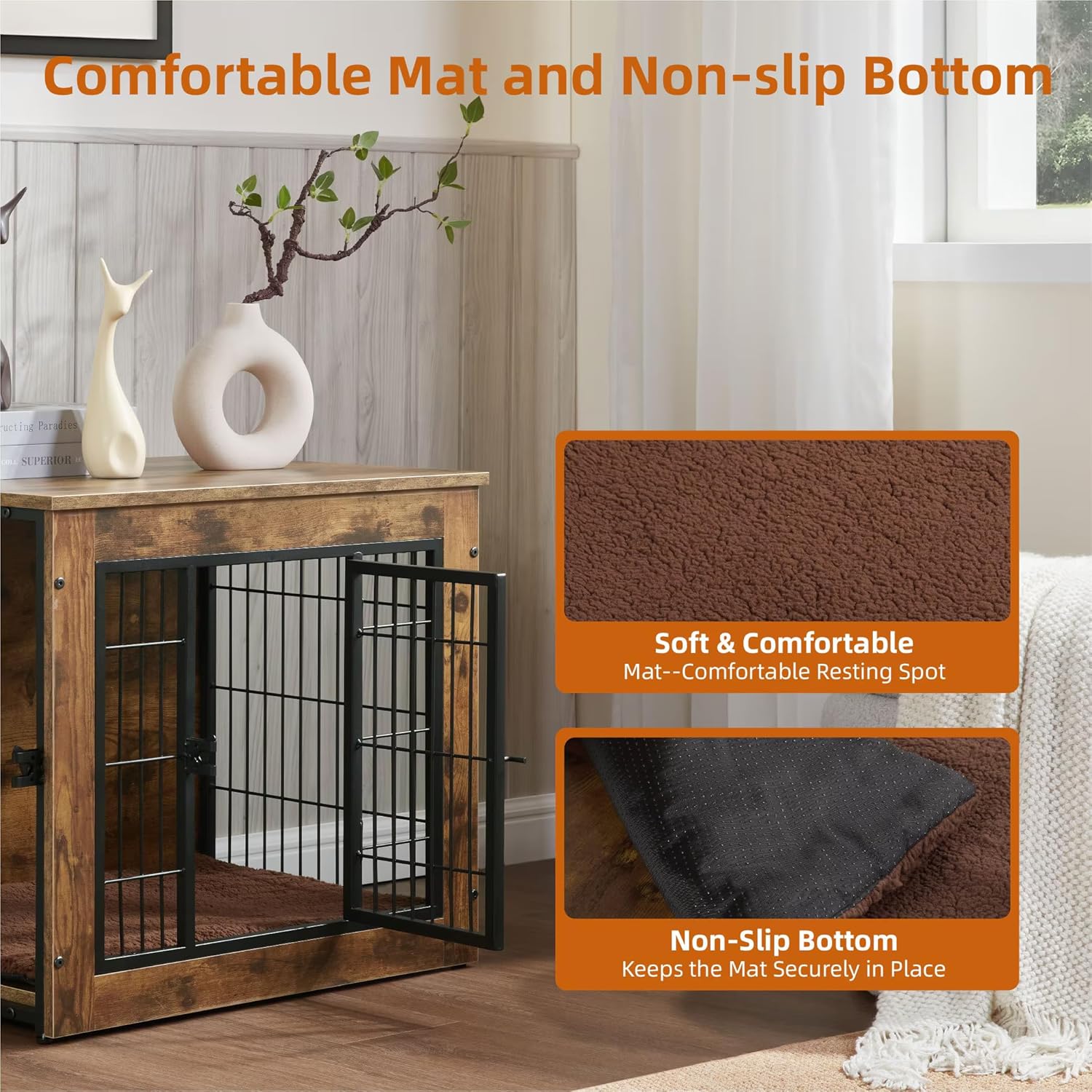 - 【Multi-Functional Design】: This dog crate furniture serves as a cozy space for your pet and doubles as a stylish side table, end table, or nightstand. The spacious top offers room for decorations like plants, photo frames, or books, making the dog crate a practical and attractive addition to your home.