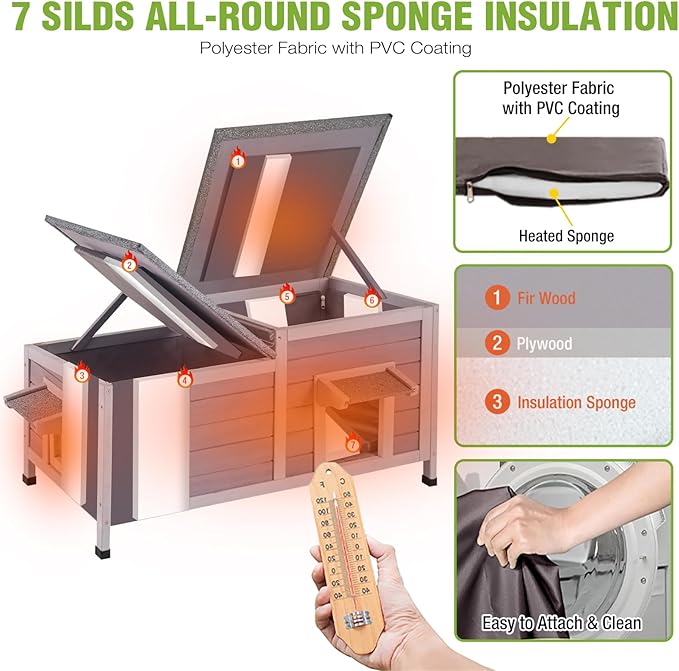 - Insulation and Ventilation: The cat house is lined with multiple layers of insulation materials, including a 0.78-inch thick sponge insulation layer, providing warmth all around. Additionally, it features a well-designed ventilation system to ensure air circulation, keeping the interior fresh and preventing stuffiness.