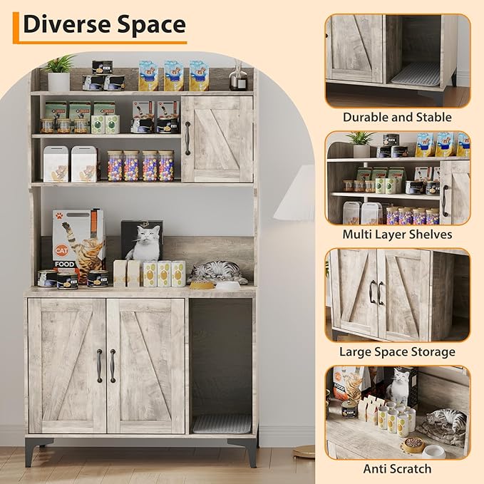 - 🐾 Hidden Litter Box Furniture - The hidden cat Litter box enclosure expertly conceals the litter box, bid farewell to chaos and foul smells. The enclosed structure, complemented by ventilation holes, and pesky odors at bay, ensures a steady supply of crisp, clean air for your cat