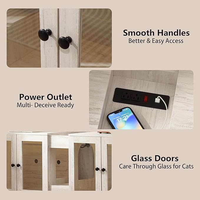 - 【Tempered Glass & Worry-Free Packaging】Rest easy about the glass! The door is made of tempered glass, known for its superior shatter resistance. To ensure maximum protection, we ship double cat litter enclosure with thick foam padding specifically designed to safeguard the glass during transit.