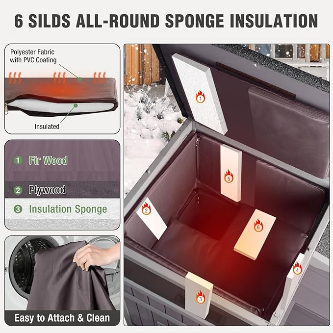 - Excellent Insulation Performance: The pet house is equipped with a 0.78-inch thick middle sponge insulation layer, maintaining warmth without the need for electricity. Additionally, the PVC door curtain design effectively blocks cold drafts, ensuring a cozy and warm interior.