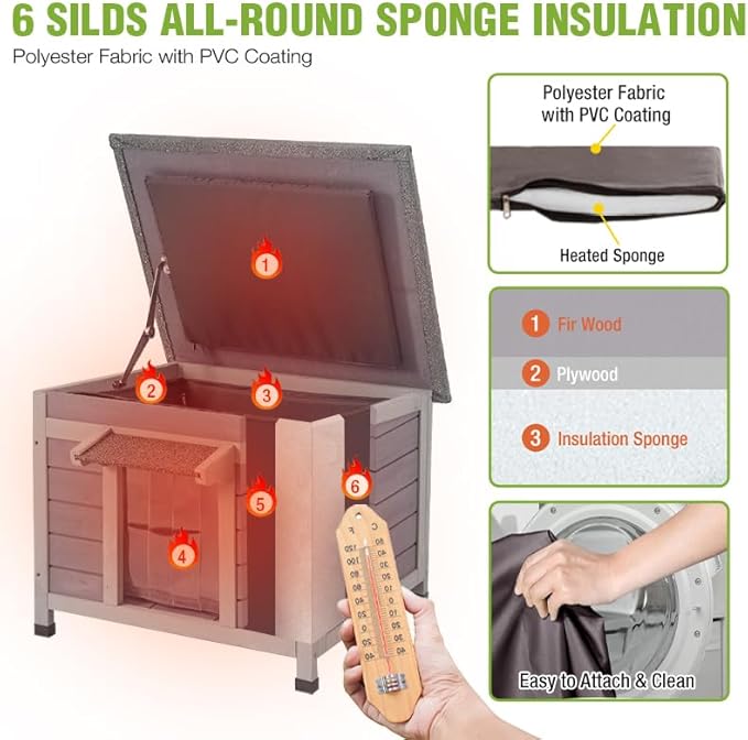 - Durable: The frame of the cat house is crafted from sturdy wood, and the door curtain is made of PVC material, enhancing durability and water resistance. This structural design ensures the stability and longevity of the cat house.