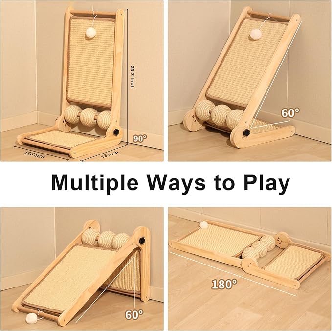 - Multifunctional design: Easy to install.L-shaped vertical placement, 60-degree diagonal angle inverted, 180-degree horizontal lying, you can change a variety of shapes and play. Match the sisal ball toy in the center, perfect for claw sharpening, climbing, and relaxing.