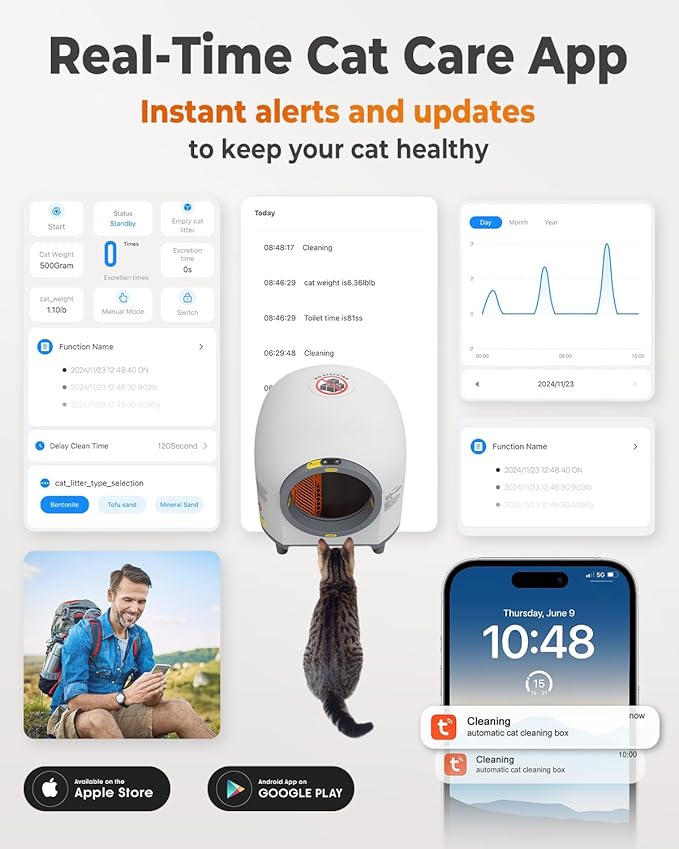 - Monitor Anytime, Anywhere: Our kitty litter box app is your solution. Anytime, anywhere, check on your furry friend. Show more love with constant monitoring.Backed by an online team. Updates promptly. Responds to every need. Ensuring a seamless experience for you and your beloved cat.