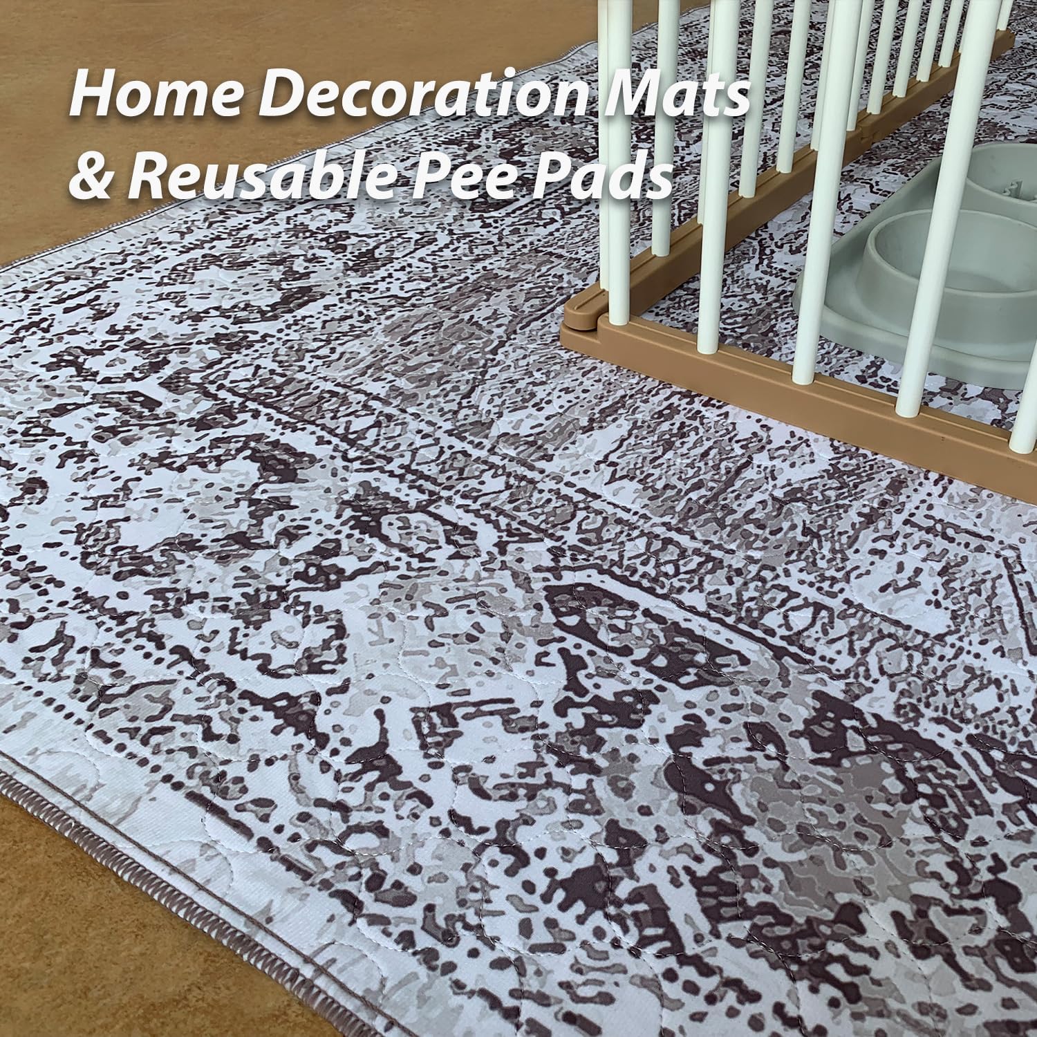 nunubaby Washable Pee Pads for Dogs, Stylish, Non-Slip and Leak-Proof Pee Pads. Reusable Potty Pads for Dogs for Crates and Floors.(Brown/Geo, 31" x36")