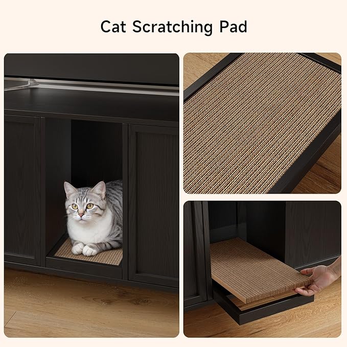- Litter Box Enclosure with Scratch Pad: This litter box enclosure includes a built-in cat scratch pad for kittens to play. Note: Replacement scratch pads are sold separately