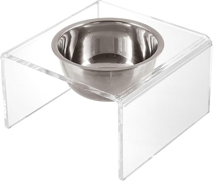 THE LICKER STORE DBL2002A Keaton 5" Small/Medium Modern Acrylic Rectangular Elevated Pet Feeder with 20oz 1-Stainless Steel Bowl, Clear/Chrome