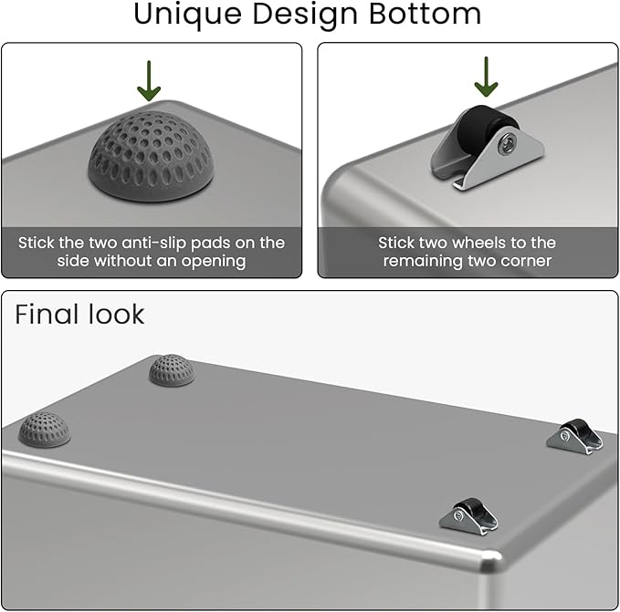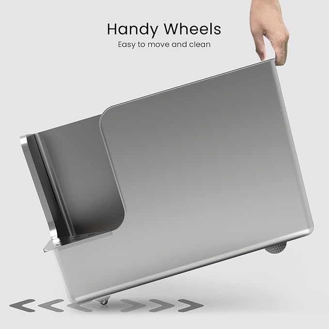 - Stable & Easy to Install & Move: Just install the anti-skid pad and metal sliding wheels according to your choice. The sliding wheels make move effortless. Plus, the included non-slip pad ensures the deep stainless steel litter box stays firmly in place, providing stability and comfort for your pets