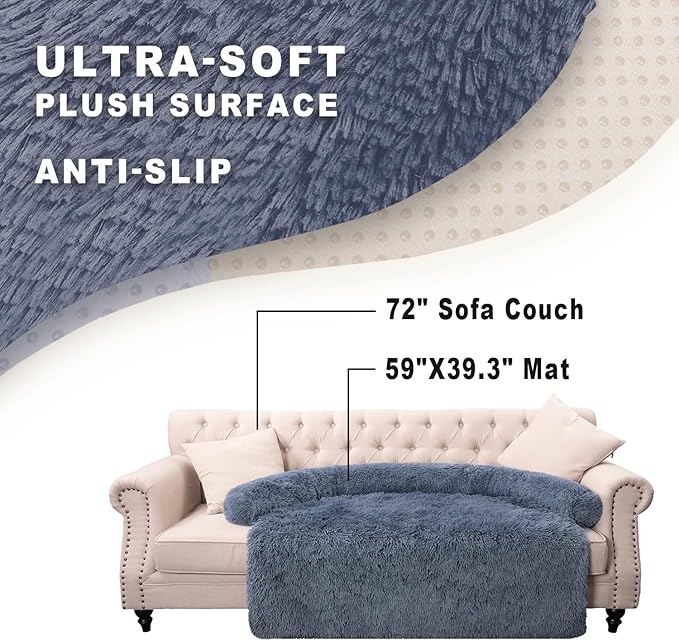 Calming Dogs/Cats Bed Mats, Dog Pad Washable Removable Couch Cover, Plush Long Fur Mat for Pets, Waterproof Lining, Perfect for Small, Medium and Large Dogs and Cats (Navy Blue, 59"x39")