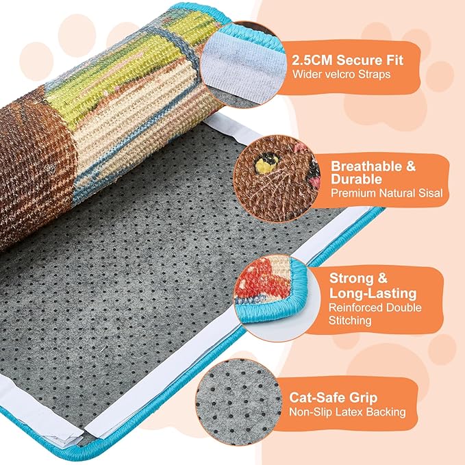• 【Made from ultra-durable sisal】This cat scratching pad withstands even the most enthusiastic claws. Its large 23.7x15.7-inch size gives your cat ample space to stretch, scratch, and play—saving your furniture from damage