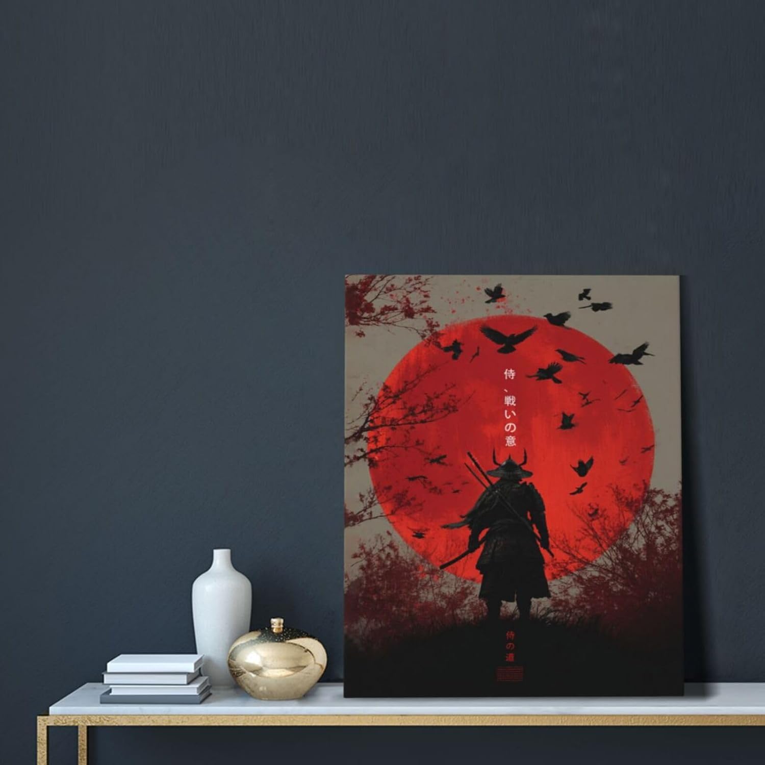 Japanese Armored Samurai Wall Art Modern Japan Warrior Canvas Wall Decor Asian Oriental Bushido Pictures Painting Print Artwork Framed Decorations Gifts for Room Bedroom Office Living Room 16"x20"