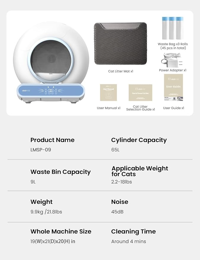 - Litter Box Type : Automated Self-Cleaning Litter Box