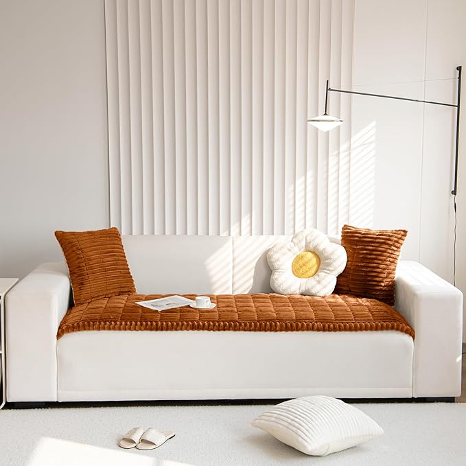 - Stays in Place: The soft faux fur Sofa Slipcover has an non-slip backing silicone rubber design; Stay in place firmly better than other normal ones which use straps. Please note, minor adjustments will be needed with rowdy dogs and kids.