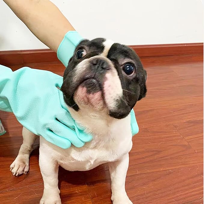 - NON-SLIP & EXTENDED SLEEVES: Internal non-slip particles increase friction to prevent slippage, making the dog grooming gloves for bathing firmly fit on the hand and not easily fall off. Extended sleeves to avoid scratches and bites