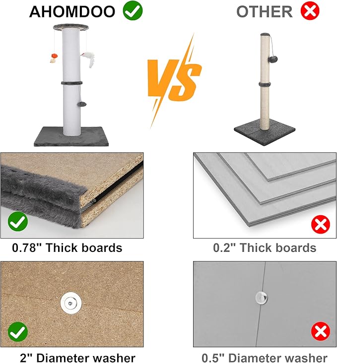 - Easy to Assemble: Scratching post is designed for quick and hassle-free setup. With simple instructions and all necessary tools included, you'll have it ready for your cat to enjoy in no time. No complicated steps – just a straightforward assembly process so your cat can start scratching, climbing, and playing right away.