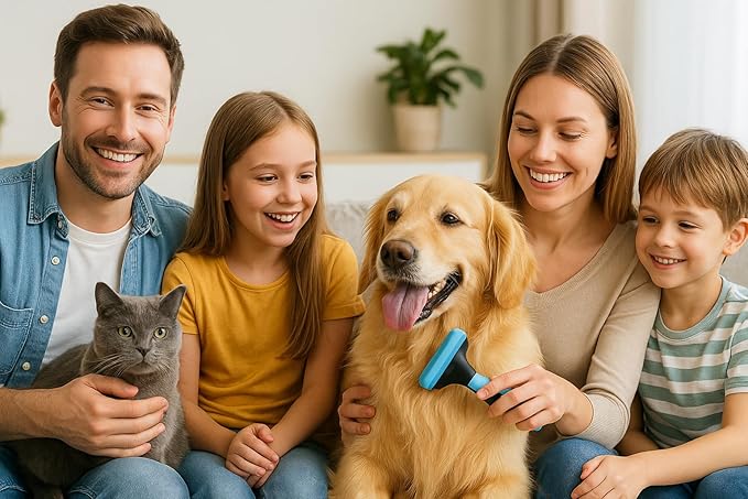 - 🐾 GENTLE CURVED DESIGN FOR COMFORTABLE GROOMING – Unlike flat deshedding tools, our ergonomic curved blade contours to your pet’s body, making each stroke smoother and safer—especially around sensitive areas. Ideal for both dogs and cats.